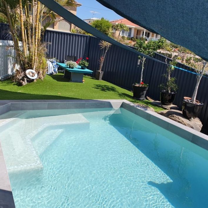 This swimming pool was constructed above ground to line up with there existing veranda. Due to the fact that this pool was in the front yard and on the western side of the house, we constructed a privacy screen which also created shade in the hot afternoons.